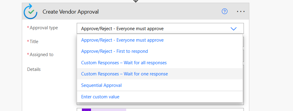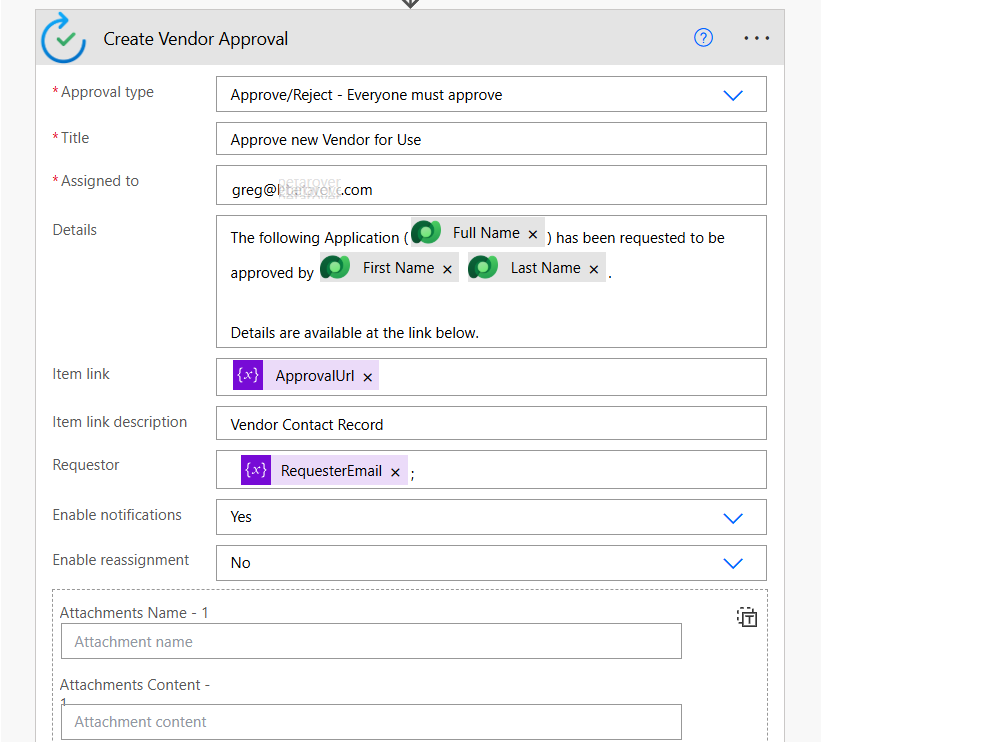 The implementation is pretty clean, allowing you to embed data from your trigger source into the actions as well. I’m only going to go through a typical approval and not one of the “Waiting Approvals.” as the primary difference there simply involves “waiting for the next user to do something”