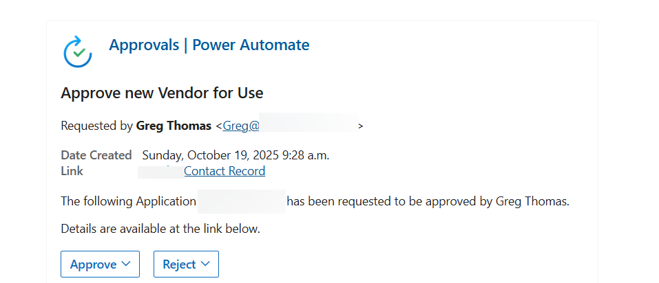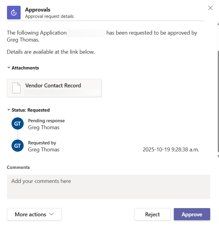 Here is where things get brilliant. As soon as I trigger this flow to occur, two things happen: 1) I get a Teams notification, and 2) I get an email. From Teams, I get this great notification telling me what has occurred and what I have to do next. Whether I Approve/Reject the claim, I can add comments for why.
