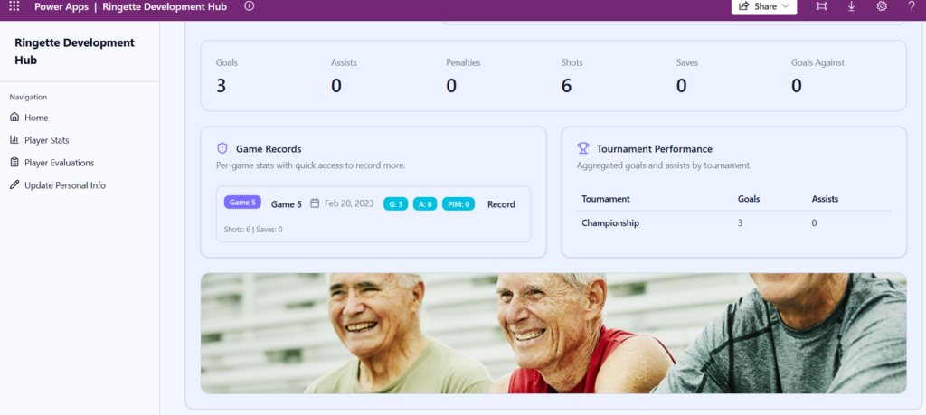 Here is one thing that bugged me, though – Ringette is primarily a female sport for young girls and women – and yet, the photo that was generated was of 3 old guys going for a run.