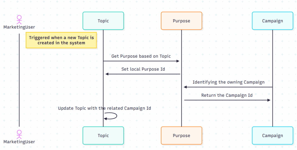 Topic->>+Topic: Update Topic with the related Campaign Id